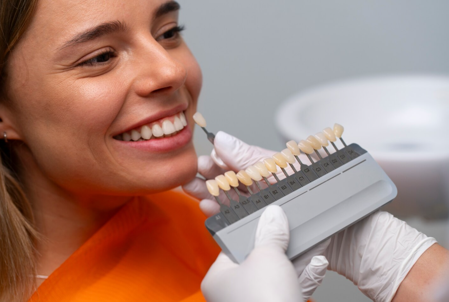 Veneers are made out of porcelain and are used mainly for aesthetic reasons.
